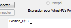 L'expression doit désormais correspondre à Position_X/13, soit la distance divisée par le rayon de la roue.