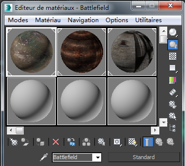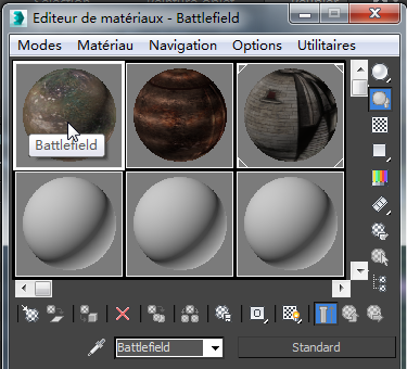 Notez que le nom Battlefield apparaît dans le champ Nom de matériau sous les champs échantillon.