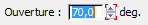 panneau déroulant Paramètres, définissez Ouvrir sur 70,0 degrés. La double flèche s'affiche désormais en rouge, ce qui indique que le paramètre Ouvrir est animé et comporte une clé sur l'image actuelle.