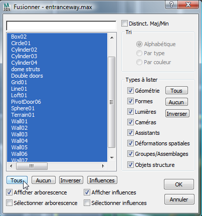 , puis cliquez sur Ouvrir. Après avoir cliqué sur le nom du fichier, la boîte de dialogue Fusionner fichier affiche une vignette de la scène.