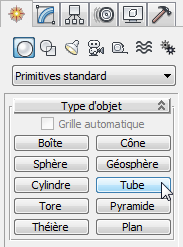 panneau déroulant Type d'objet, cliquez sur Tube. Le bouton Tube est mis en surbrillance, ce qui indique qu'il est actif et prêt à être utilisé.