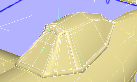 Comme avec l'entrée d'air ou le bord avant de l'intérieur du cockpit, vous allez réduire le lissage NURMS en renforçant une arête, c'est-à-dire en ajoutant des boucles d'arêtes à proximité. Vous effectuerez cette opération au niveau des pare-brise de la verrière du cockpit.