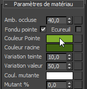 - Ouvrez le panneau déroulant Paramètres de matériau. Cliquez sur l'échantillon de couleur Couleur racine.