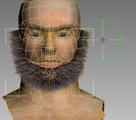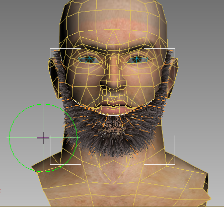Remarque : Les poils de barbe apparaissent dans les fenêtres orthographiques (Face, Dessus, Gauche, etc.), mais ils n'y sont pas rendus. Vous ne pouvez effectuer le rendu des poils de barbe que dans les fenêtres Perspective et Caméra.