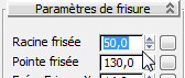 - Ouvrez le panneau déroulant Paramètres de frisure. Remplacez la valeur du champ Racine frisée par 50,0.