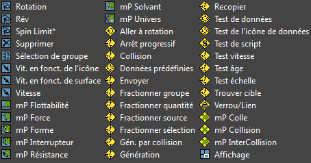 L'entrée Peinture emplacement est suivie de "(???)". Cela signifie que vous ne lui avez pas encore attribué d'assistant Peinture particule.