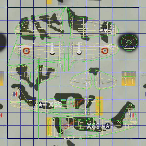 Désormais, toutes les faces du P-47 ont été affectées à la partie appropriée de la map texture.