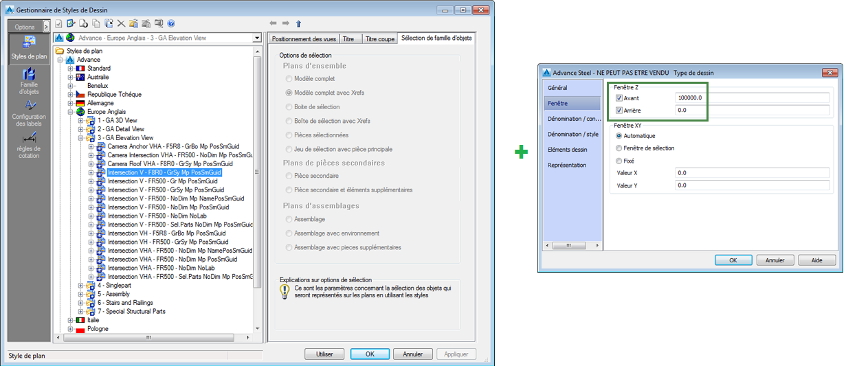 Remarque : Dans le cas d'une présentation partielle qui a été créée à l'aide d'un style de plan qui utilise les options Modèle complet ou Modèle complet avec Xrefs dans Sélection de famille d'objets (dans le Gestionnaire des styles de plan), les listes créées dans cette vue contiendront tous les objets du modèle, et non uniquement ceux inclus dans la boîte de sélection.