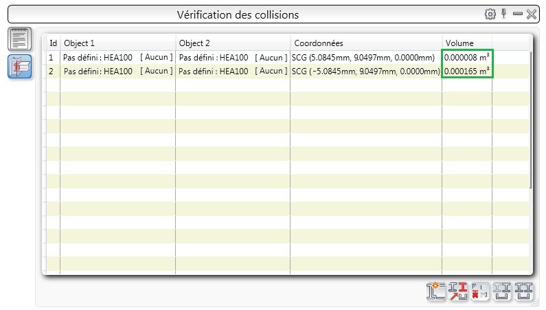 Vérification des conflits : les unités de volume configurées s'affichent dans les résultats de la vérification des conflits dans le panneau de données :