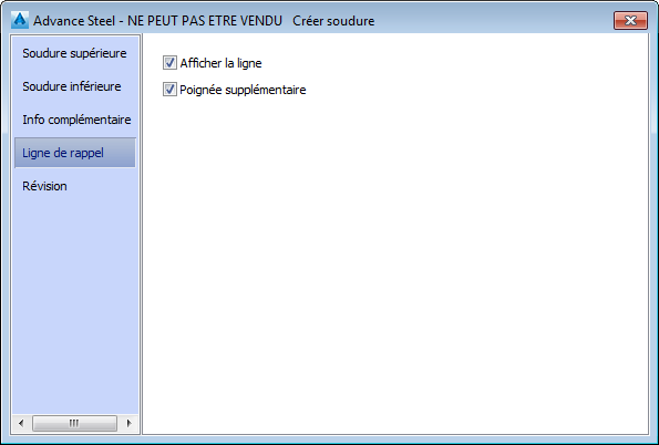 De nouvelles propriétés ont été ajoutées pour les soudures et sont disponibles dans la boîte de dialogue des propriétés des soudures :