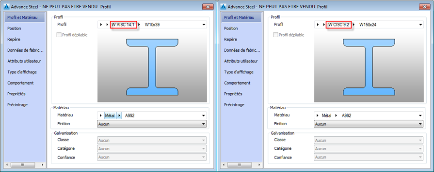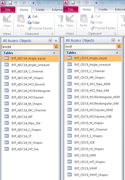 Les profils les plus récents ont été ajoutés dans de nouvelles tables et les tables des anciens profils ont été renommées ZZZObsolete. Les tables qui contiennent les derniers profils contiennent les valeurs AISC 14 et CISC9 dans leur nom.