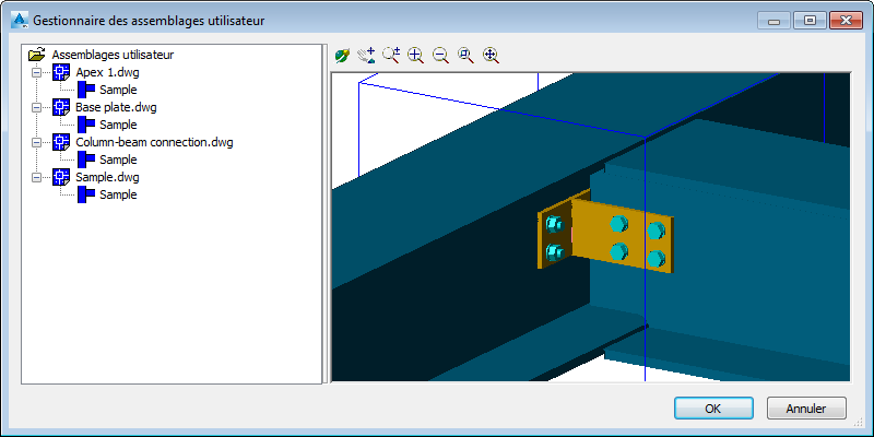 Les exemples de fichiers enregistrés à cet emplacement seront visibles dans l'explorateur d'assemblages utilisateur avec ceux stockés dans l'emplacement dédié dans Données des programmes :