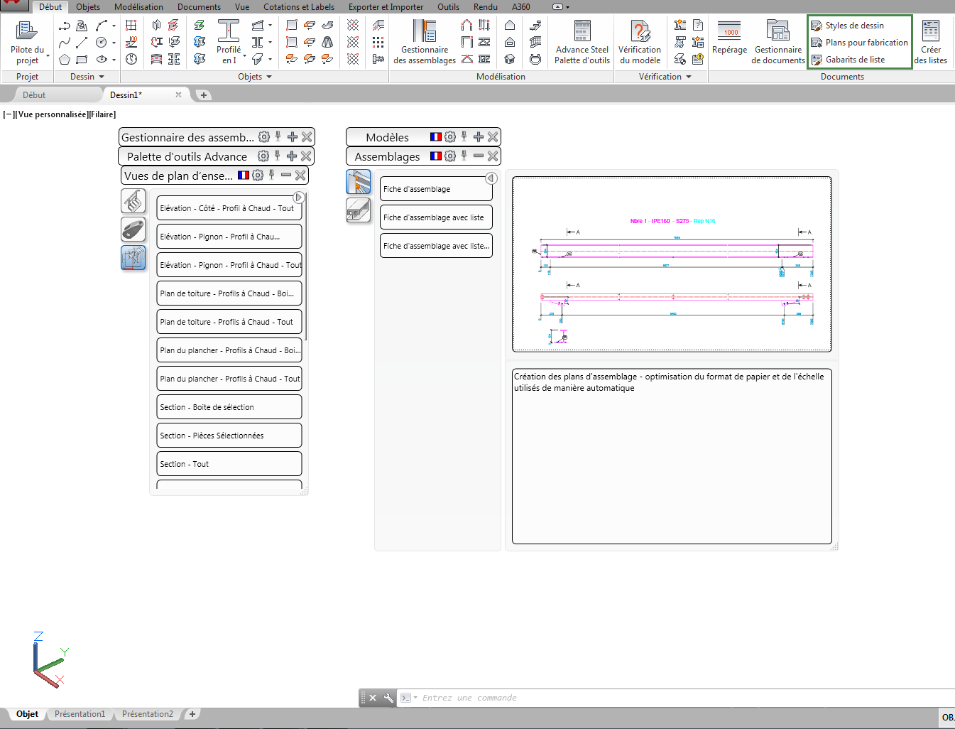 Développer ou masquer le contenu des palettes en cliquant deux fois : vous pouvez désormais facilement développer ou masquer le contenu d'une palette Advance Steel en cliquant deux fois sur la barre de titre de la palette.