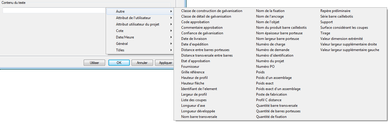 Vous pouvez parcourir le menu contextuel et choisir les variables à afficher dans les dessins de détail.