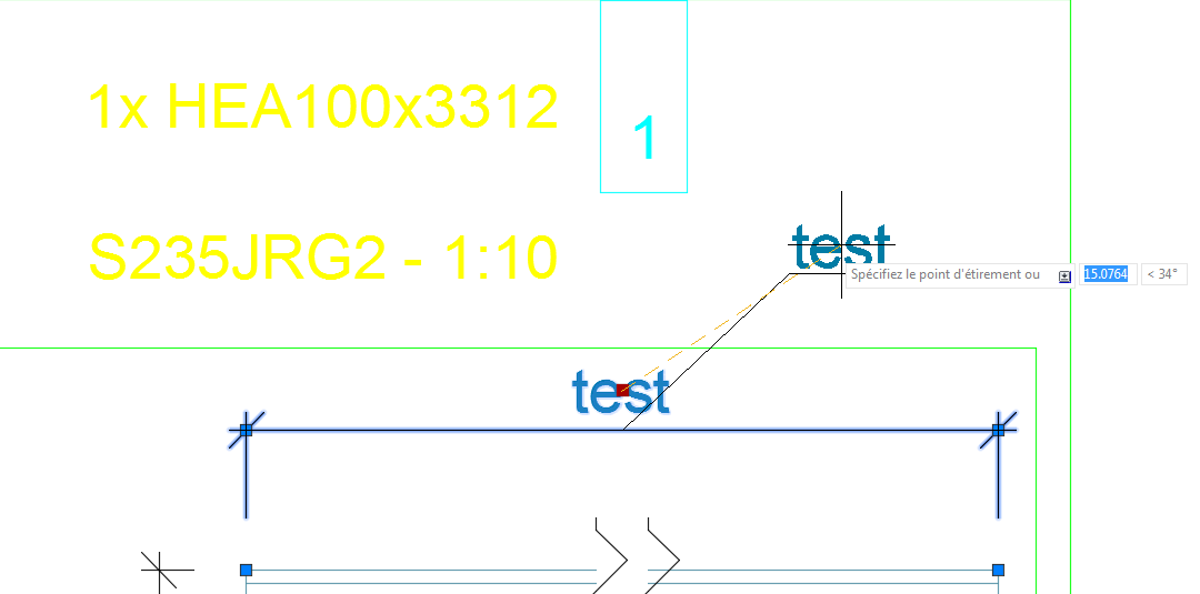 Les lignes de cotation sont automatiquement étendues selon la longueur du texte du label lorsque le label est placé avant ou après la ligne de cotation. Vous pouvez facilement modifier la position du label après sa création à l'aide d'une poignée attachée au texte.