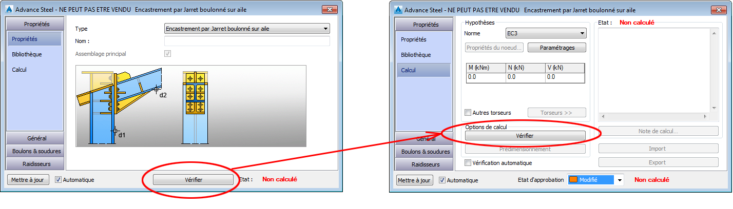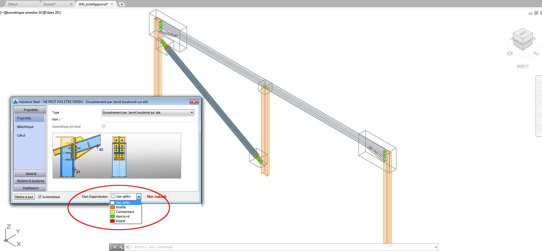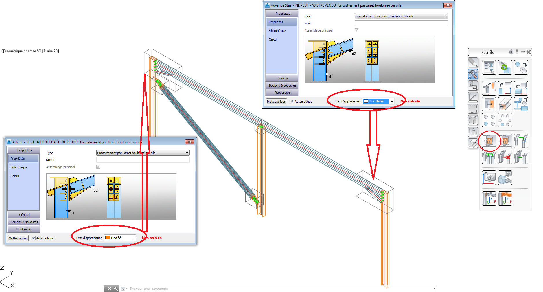 Vous pouvez désormais marquer l'état de fabrication d'une connexion. L'état de fabrication est différent de l'état de la conception (qui est un état de "calcul"). Chaque état est associé à une couleur.
