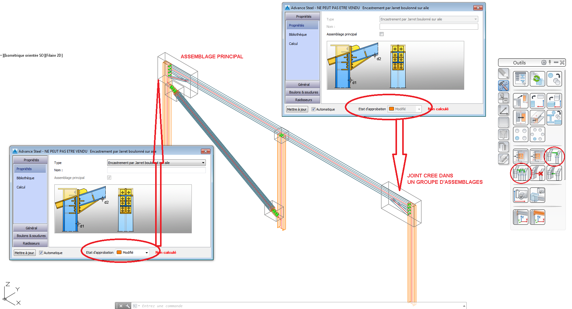 Si l'assemblage est supprimé d'un groupe d'assemblages (_AstorDetachSlaveJointFromMaster), l'état d'approbation de l'assemblage désassocié reste inchangé.
