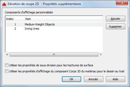 Cette procédure permet d'appliquer (ou non) le composant d'affichage Corps 3D d'un matériau au dessin au trait d'une élévation 2D.
