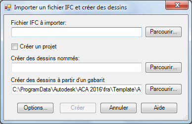 Lorsque vous importez un fichier IFC, des fichiers de dessin correspondant à chaque partie de la structure du projet IFC sont créés. Ces fichiers sont référencés en externe dans un fichier hôte principal représentant le fichier IFC entier. Le processus d'importation crée également un fichier journal contenant des informations sur l'emplacement géographique et les objets. Ce fichier est stocké dans le même emplacement que le fichier IFC importé. Les fichiers IFC peuvent être importés dans un projet AutoCAD Architecture ou en tant que dessins indépendants.