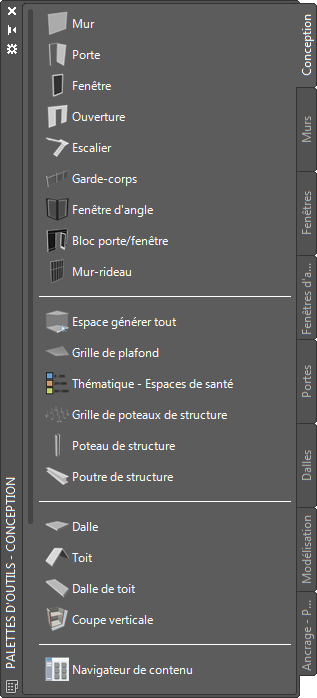 Les palettes suivantes contiennent un ou plusieurs outils de blocs porte/fenêtre :