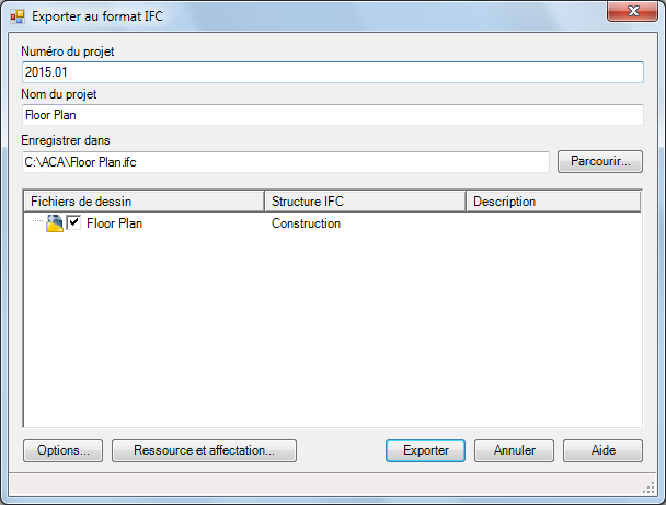 • Au besoin, modifiez le nom dans le champ Nom du projet. Par défaut, il affiche le nom du dessin à exporter.