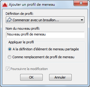 à partir d'un profil existant dans le dessin | sélectionnez le profil existant dans le champ Définition de profil, puis cliquez sur Poursuivre la modification. |