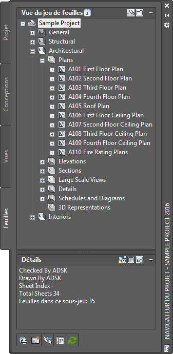 Jeu de feuilles du projet dans le Navigateur du projet AutoCAD Architecture