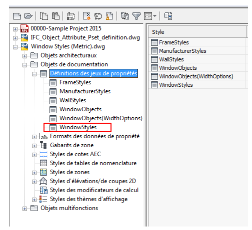 - Développez Table de nomenclature et style et sélectionnez Nomenclature de fenêtre.