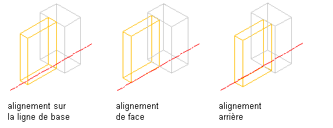 Cette procédure permet d'aligner un élément de remplissage de manière à le centrer sur la ligne de base du mur-rideau ou à le placer devant ou derrière cette ligne. Dans une vue en plan, la face avant d'un mur-rideau (dessiné de la gauche vers la droite) est située en dessous de la ligne de base et la face arrière est située au-dessus.