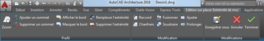 - Avec le ruban : dans l'onglet Modifier sur place du profil sélectionné, cliquez sur le groupe de fonctions Profil