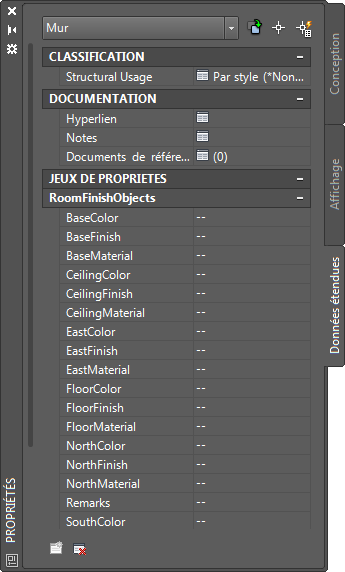 L'onglet Données étendues de la palette des propriétés contient les propriétés d'objet suivantes :