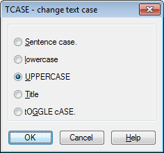Change la casse du texte, du texte multiligne, des attributs et du texte de cote sélectionné.