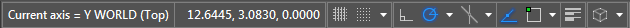 L'icône du SCU avec les lignes d'axe RTUCS et la ligne d'état affichent les informations sur l'axe courant :