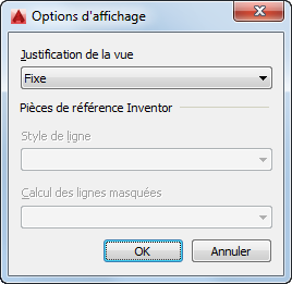 Cette boîte de dialogue indique l'emplacement d'ancrage de la géométrie de la vue, ainsi que la méthode d'affichage des pièces de référence Inventor.