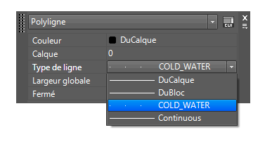 Permet de créer une définition de type de ligne en fonction des objets sélectionnés et de les enregistrer dans un fichier de définition de type de ligne (LIN).