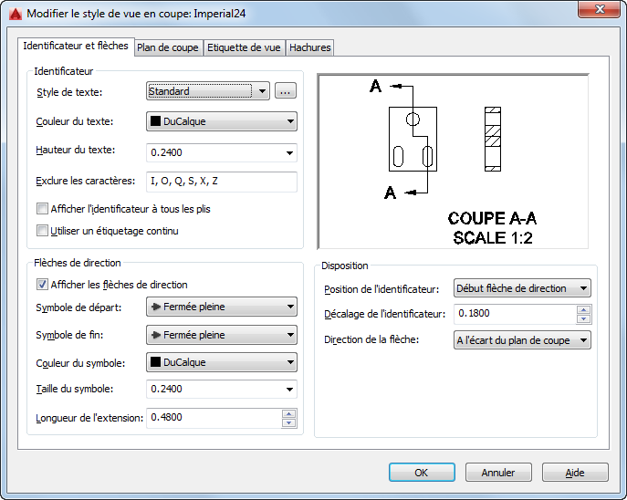 - Indique si les flèches de direction doivent pointer vers le plan de coupe ou dans la direction opposée.