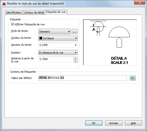 - Indique le style de texte à utiliser pour l'étiquette de la vue de détail.