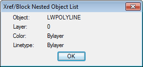 Affiche le type, le nom du bloc, le nom du calque, la couleur et le type de ligne d'un objet imbriqué dans un bloc ou une Xréf.