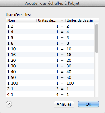 Affiche la liste des échelles pouvant être ajoutées à l'objet annotatif sélectionné.