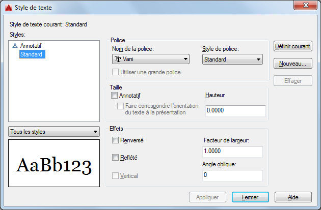 Affiche la liste des styles présents dans le dessin. L'icône précédant un nom de style indique que le style est annotatif.