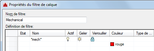 Ce filtre est nommé Mécanique et la définition de filtre contient les critères suivants :