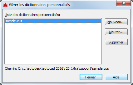 Vous permet d'ajouter un dictionnaire personnalisé existant à partir de vos listes de fichiers.