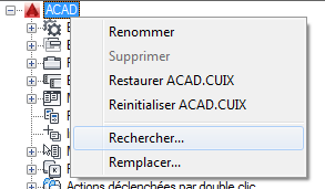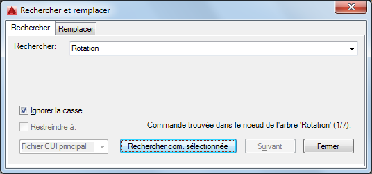 Un message s'affiche, détaillant l'emplacement de la commande, sa position exacte dans le volet Personnalisations dans ou Propriétés, ainsi que le nombre d'occurrences de la commande.