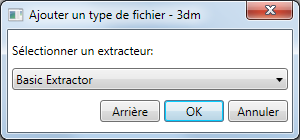 - Sélectionnez l'extracteur adapté au type de fichier. L'extracteur par défaut fourni avec Autodesk Content Service est "Basic;". Il indexe les propriétés suivantes si celles-ci sont disponibles.