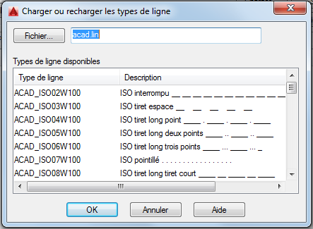 Charge un type de ligne dont la définition existe dans un fichier bibliothèque de types de ligne (LIN).