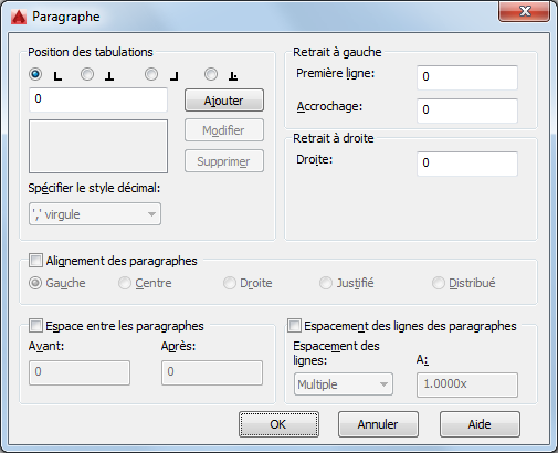 Définit le style décimal selon le paramètre régional courant de l'utilisateur. Les styles décimaux disponibles sont le point, la virgule et l'espace. Ce paramètre est conservé avec le dessin même si le paramètre régional est modifié.