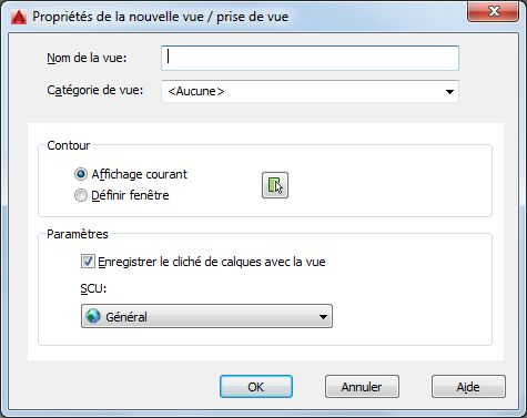 Pour les vues des présentations et des modèles, spécifie un SCU à enregistrer avec la nouvelle vue.
