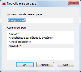 Si vous ouvrez la boîte de dialogue Nouvelle mise en page depuis le gestionnaire du jeu de feuilles, seules les mises en page nommées dans le fichier des autres mises en page sont répertoriées.