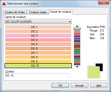 Indique le carnet de couleurs à utiliser lors de la sélection des couleurs.