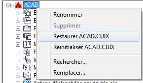 Remarque : Lors de la réinitialisation, seuls les fichiers CUIx du dossier UserDataCache figurant dans l'emplacement d'installation du programme peuvent être réinitialisés.